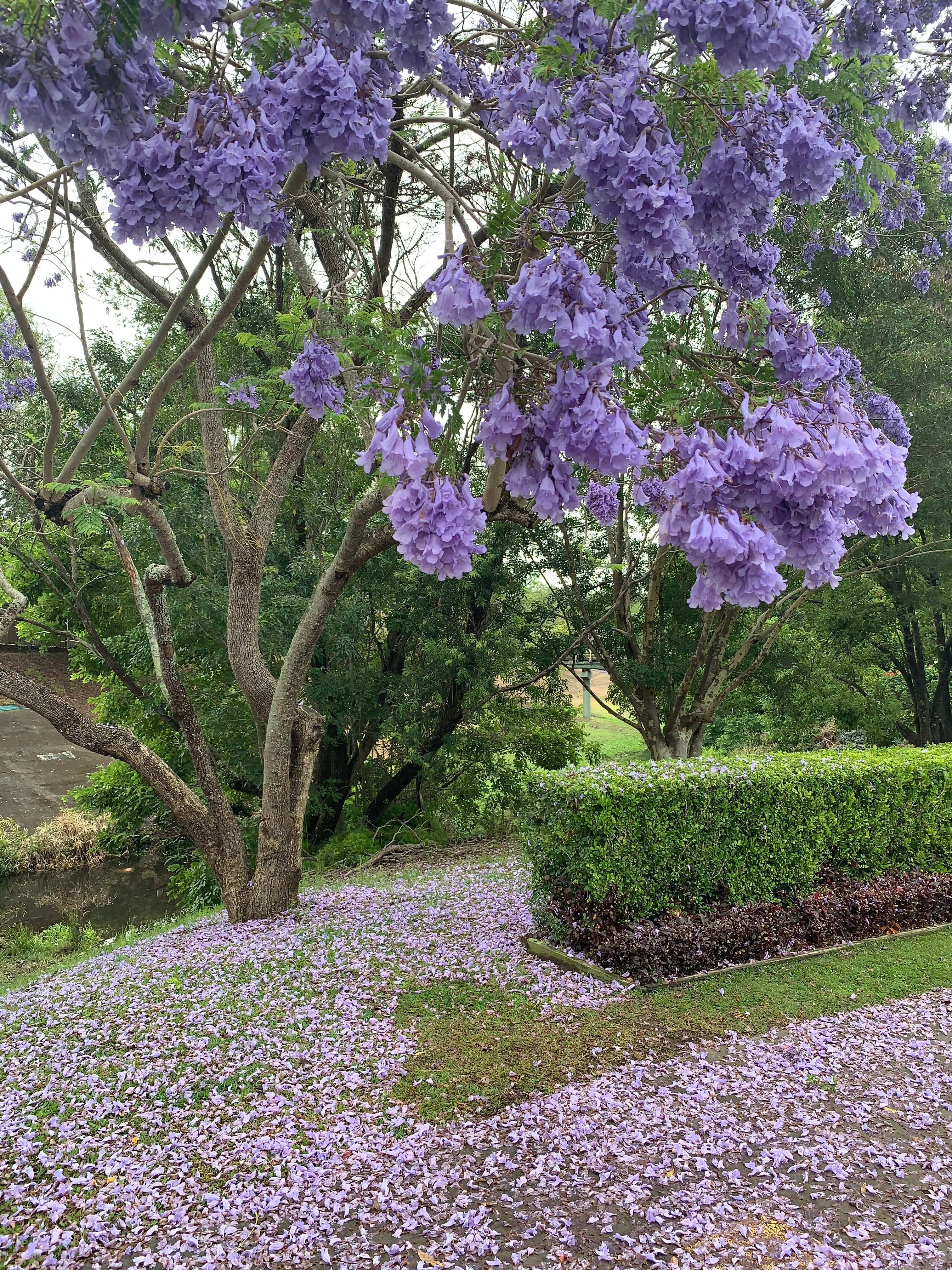 I think of you often. I thought you might like to know. But thinking about you and seeing you is the difference between jacaranda trees before and after October. Before, their bare branches and grey trunks blend into the landscape to such an extent that they might as well be invisible. Until one morning in October, you wake up to see clusters of purple petals adorning those nondescript trees of September.